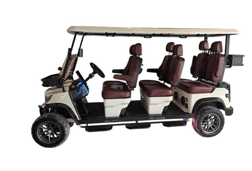 Built for larger groups, offering spacious comfort without compromising on performance. Powered by advanced electric technology, it delivers smooth, quiet, and eco-friendly rides across golf courses, resorts, or communities. With ample seating, reliable power, and zero emissions, this cart is the perfect blend of convenience, sustainability, and modern design.